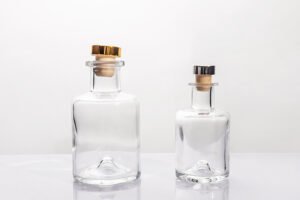 Modern Cylindrical Glass Bottles with Gold/Silver Caps – 2-Size Set