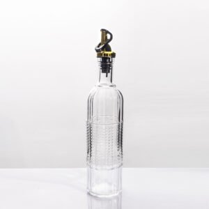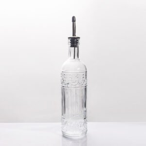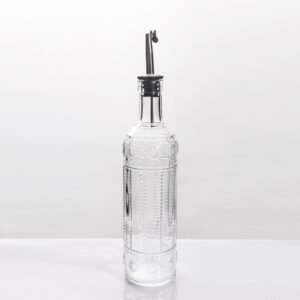 Embossed Glass Oil Dispenser Bottle with Stainless Steel Pour Spout