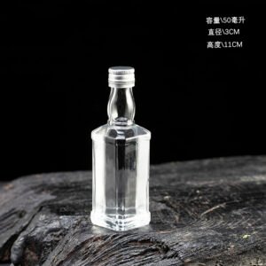 50ml Mini Square Glass Liquor Bottle with Silver Aluminum Cap