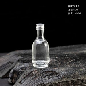 50ml Stout Round Glass Liquor Bottle with Silver Aluminum Cap