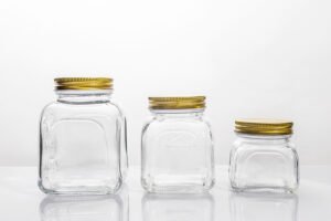 Vintage Square Glass Jars with Gold Lids – 3-Size Set