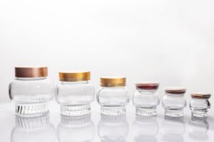 Embossed Glass Jars with Multi-Color Lids – 5-Size Set
