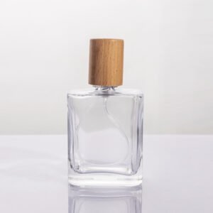 Clear Square Glass Perfume Bottle with Natural Wood Cap